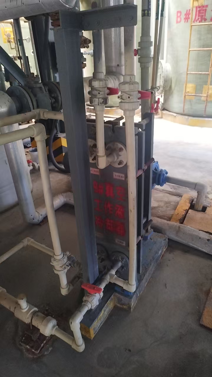 2.改造技術方案中:增加UPVC管道、DN80長度增加80米、增加DN65管道130米、DN40管道80米、DN50管道70米(管道均由采購人提供,供應商負責安裝);氟化物儲罐底部增加泵(離心泵型號:50FSB(L)-15-25/3kW-2 ,流量≥15m3/h,揚程≥25米,功率3kW-2 ,380V;增加一組波紋板式換熱器(蒸餾水冷卻器E104B/E204B,HX100A-1,材質:碳鋼,設計溫度:150℃,設計壓力:1.0MPa(G),換熱面積:10㎡,換熱板厚度:0.6mm,介質:循環水)。泵和換熱器由供應商提供并負責安裝。